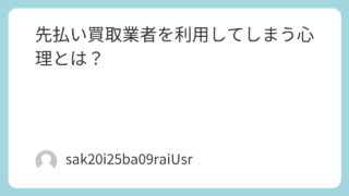 記事 先払い買取業者を利用してしまう心理とは? 先払い買取業者の手口は摘発されるたびに変わってきています。その巧妙な手口により違法と気づかない人もたくさんいます。商品の引き渡しが給料日だからと、買取金額の倍近い金額の商品券を用意するなど正常ではありません。もしすでに取引している人はまずは専門家に相談されることをおすすめします。 2025.09.30 記事