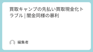 買取キャンプの先払い買取現金化トラブル | 闇金同様の暴利