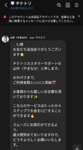 また、過去にチケトリを利用したことがあった場合は、LINEで勧誘してくることもあるため注意が必要です。