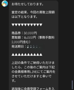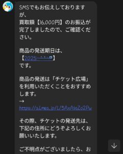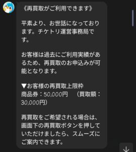 先払い買取業者 チケトリのLINEメッセージ