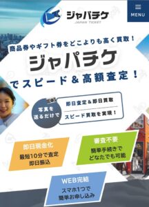 ジャパチケは商品券やギフト券などの金券の写真をオンラインで買取査定し、査定額を即日銀行口座へ振り込む先払い現金化サービスを行っている業者です。