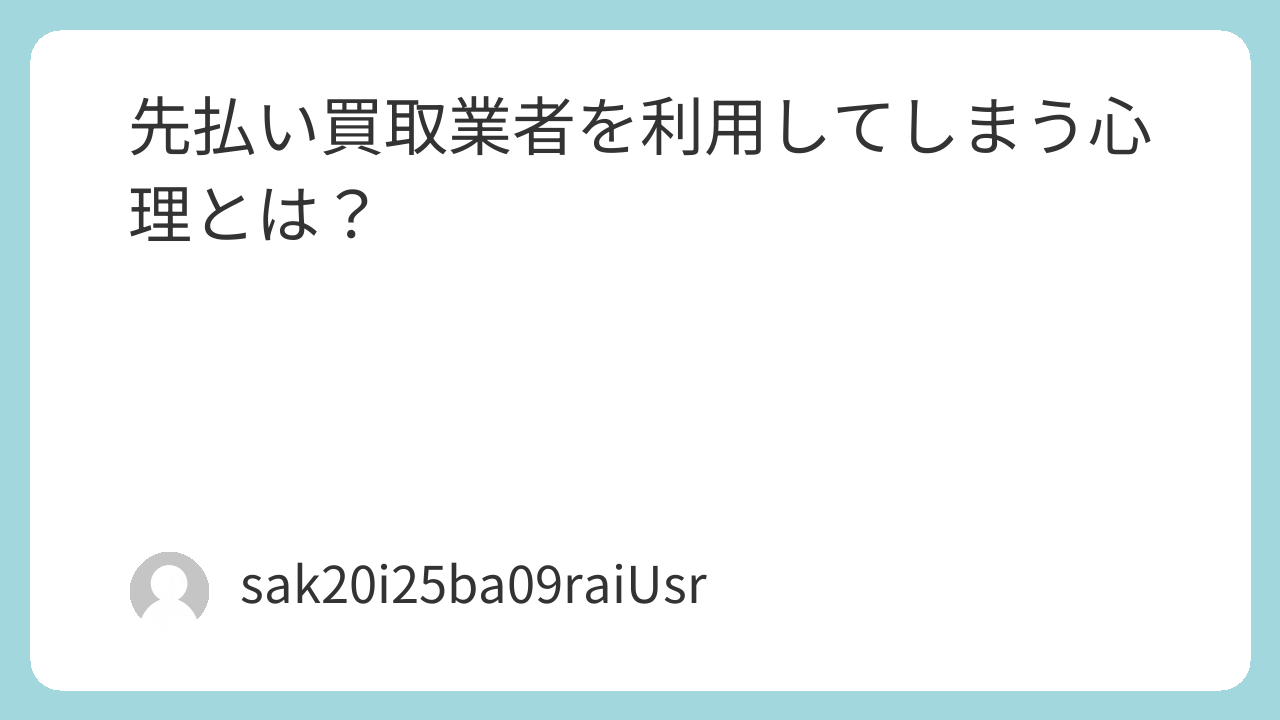 なぜ、先払い買取業者を利用してしまうのか?