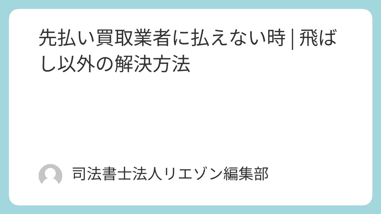 先払い買取業者との直接交渉は、法的に解決できる専門家(弁護士・司法書士)を通すことが唯一の安全な解決策であるといえます。