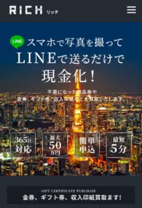 RICH(リッチ)は、商品券・ギフトカード・収入印紙などの金券を扱う買取業者とされており、「商品の売買」を装っていますが、実際に商品の引き渡しはなく買取査定金額の振り込みを行う先払い買取業者のひとつです。