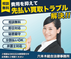 六本木総合法律事務所は、相談者の悩みに即日対応してくれる闇金・先払い買取問題に力を入れている弁護士事務所です。