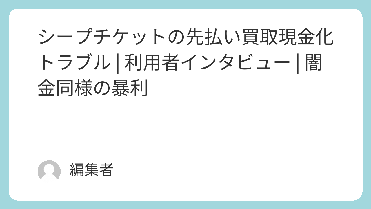 シープチケットの先払い買取現金化トラブル | 利用者インタビュー | 闇金同様の暴利
